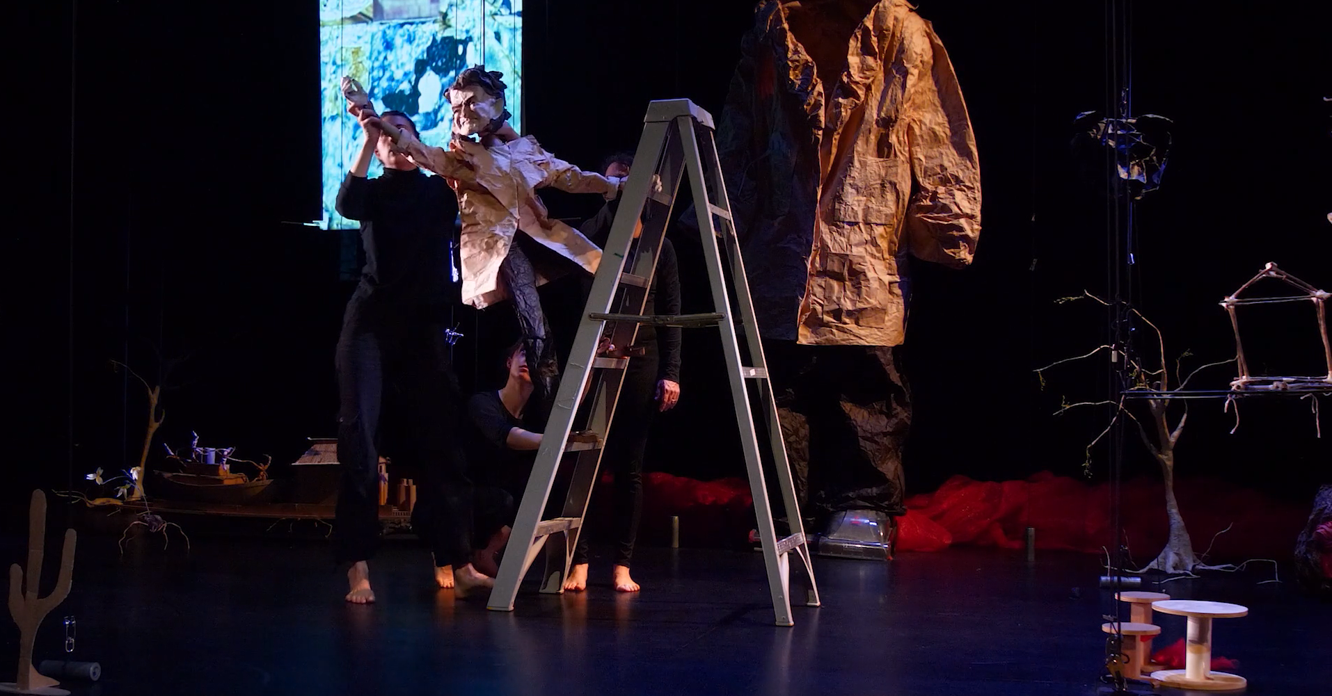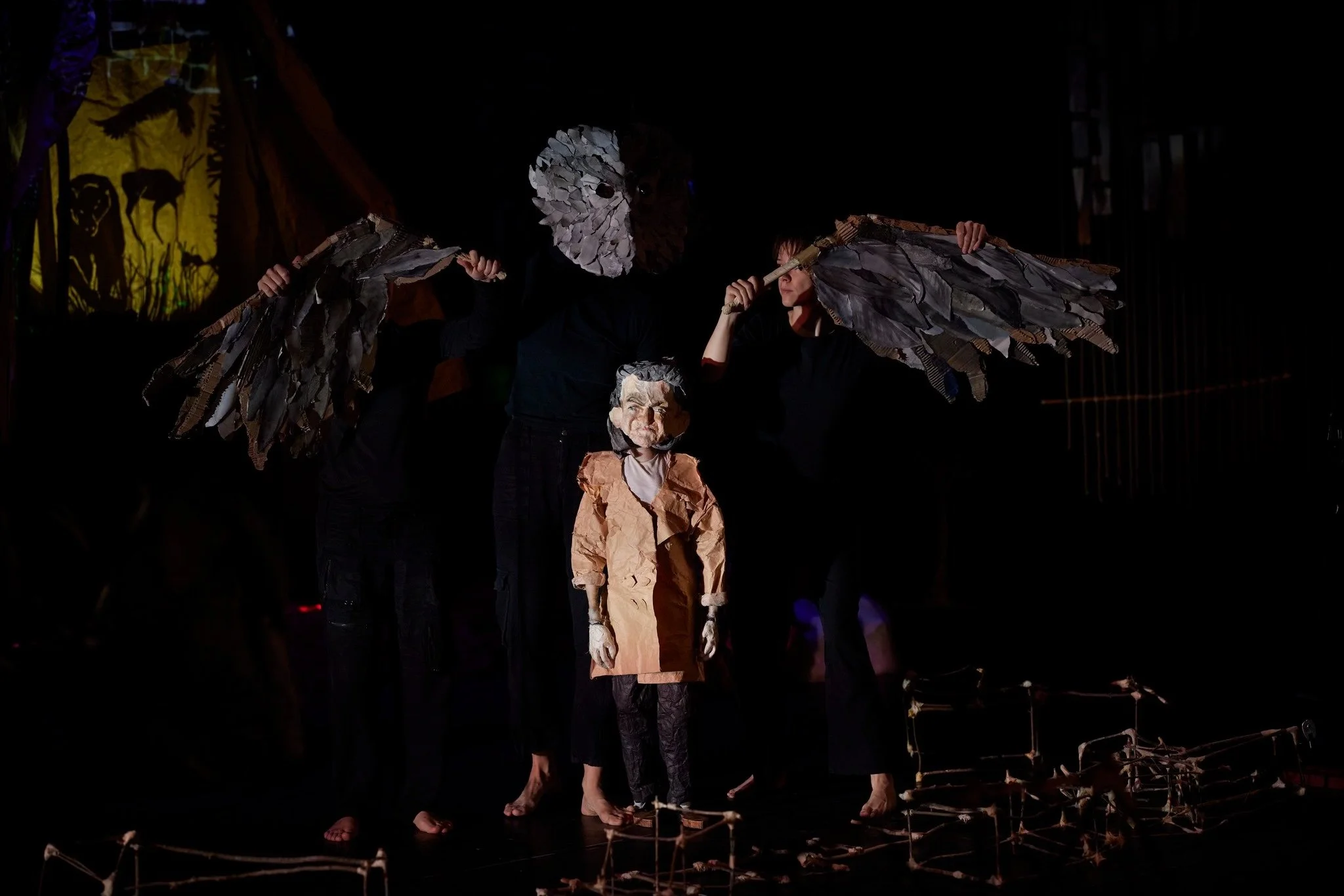 I assembled a team of skilled and dedicated collaborators. Through a series of research and performance residencies that included workshops with local communities, we built a 60-minute performance. The performance begins with a lecture introducing artifacts from Kea’s archive, and moves into a world with live electric cello, synth, and voice, spare poetic language, a landscape of sculpture and puppets, and seamless ensemble movement that brings it all to life.